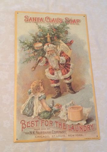 Title (ebay affiliate link): Embossed Tin Sign - Santa Claus Soap, Victorian Christmas ~ Metal Advertising