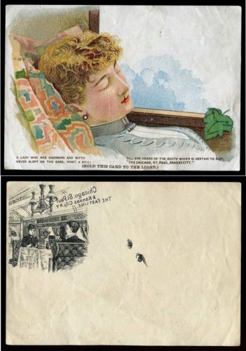 Title (ebay affiliate link): Rare CHICAGO, ST. PAUL & KANSAS CITY RAILROAD ~ HOLD to LIGHT ~ 1880s TRADE CARD
