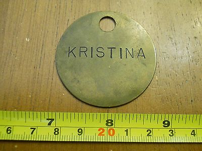 UNKNOWN BRASS NAME TAG KRISTINA ? vtg old mod estate keychain key fob