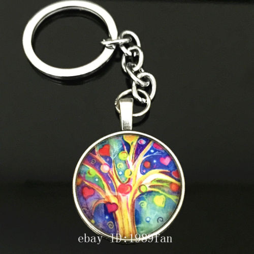 Title (ebay affiliate link): Vintage Tree of Life Keychain Cabochon Tibetan silver Glass Metal Key Ring K11#1