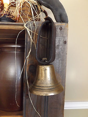 ANTIQUE BRASS BELL ON LEATHER STRAP *MAINE FARM FIND*