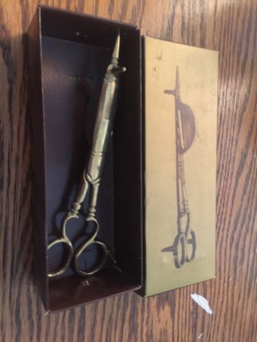 Title (ebay affiliate link): VINTAGE Brass Candle & Oil Lamp Snuffer/Wick Trimmer Scissors in excellent shape