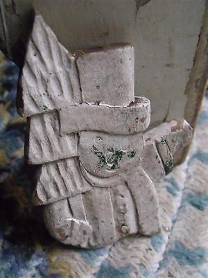 Primitive Vintage Carved Wood Christmas Ornament Americana Folk Art Snowman