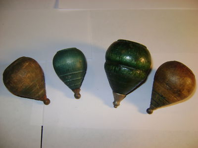 ANTIQUE CHILDS WOOD SPINNING TOPS TOY LOT OF 4