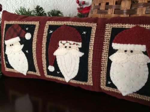 Title (ebay affiliate link): Primitive Xmas Santa Burlap Pillow Cupboard Tuck Bowl Filler Wool Penny Rug