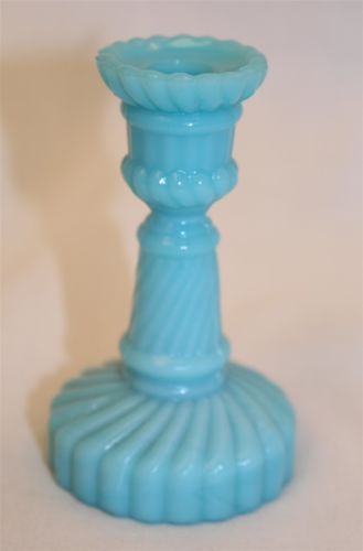 Title (ebay affiliate link): Blue Milk Glass Candleholder Opaque Taper Candlestick Petite Small Miniature