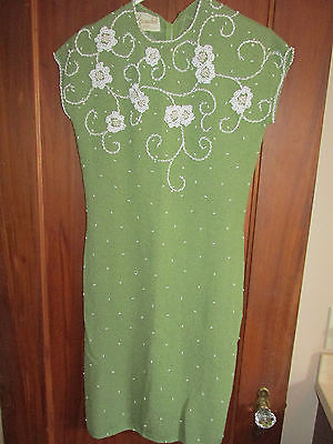Title (ebay affiliate link): Alexander's Wool British Hong Kong Vintage dress milk glass bead embroidery