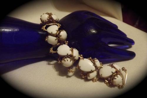 Title (ebay affiliate link): Beautiful Vintage 1960's Unique Chunky Layered Milk Glass Link Bracelet