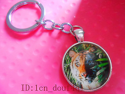 hot Vintage Tiger Cabochon Tibetan silver Glass Key Chain UE30`@11~