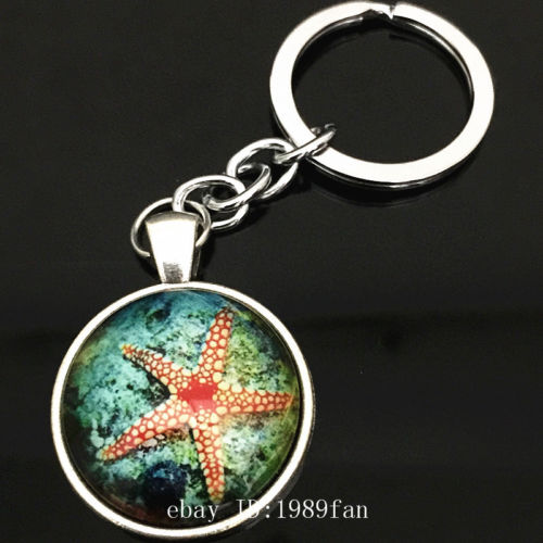 Title (ebay affiliate link): Vintage Sea Star Keychain Cabochon Tibetan silver Glass Metal Key Ring YK31`@1