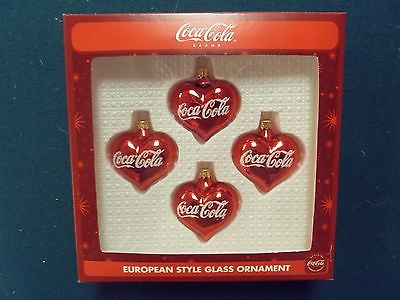 Title (ebay affiliate link): New in Package Coca Cola Brand European Style Glass Ornament 4 Heart Shape 1box