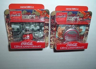 LOT 2 Coca Cola Soda Pop JAPAN Coke Promo Bottle Topper Key Chains MINT
