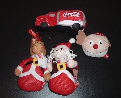 Title (ebay affiliate link): LOT FOUR 4 Coca Cola Soda Pop Plush Christmas Tree Coke Ornaments Mint in Pack