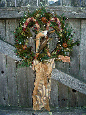 Title (ebay affiliate link): PRIMITIVE DOOR CHARMER WREATH~RAG STRIP CANDY CANES~CROW~CHRISTMAS/WINTER