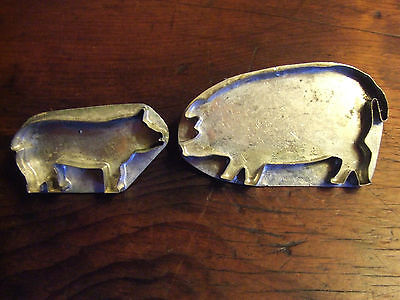 Antique c.1900 Pig & Miniature Piglet Tin Flatback Cookie Cutters PA Folk Art