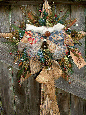 Title (ebay affiliate link): PRIMITIVE BLUE TICKING STAR~VINTAGE BLUE QUILT MITTENS~CHRISTMAS/WINTER