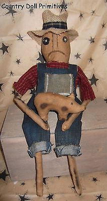 PRiMiTive Grungy rusty Rag Doll w/ pig - 20in Rustic Country Farmer Doll