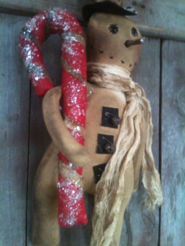 Title (ebay affiliate link): Primitive Snowman doll with his Wool Candy Cane Christmas winter farmhouse 21"
