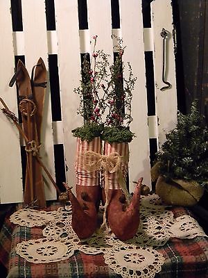 Primitive Folk Art Red Santas Elf Boots leg warmers pip berries n sweet annie