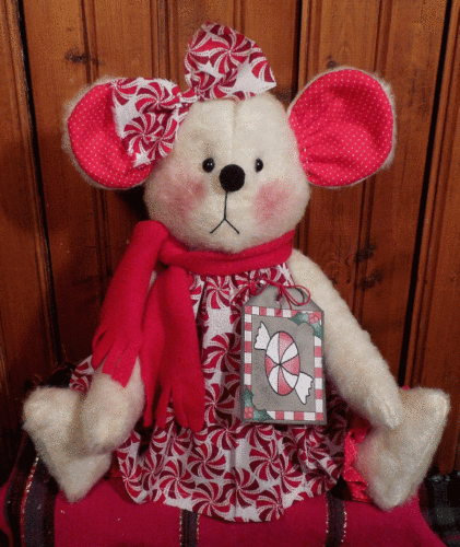 Title (ebay affiliate link): Handcrafted Primitive CHUBBY CHRISTMAS POLAR BEAR Doll in PEPPERMINT CANDY Dress