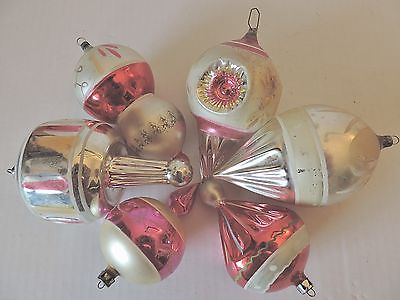 6 Antique Glass Christmas Ornaments Tops Tear Drop, One Has Hexagonal Hanger