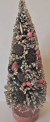 Vtg 10" Bottle Brush Christmas Tree Fruit, Pine Cones, Glitter