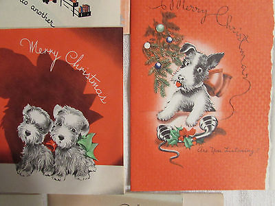 12 VINTAGE CHRISTMAS GREETING CARD SCOTTY SCOTTIE TERIERS DOGS 1930 - 40'S LOT