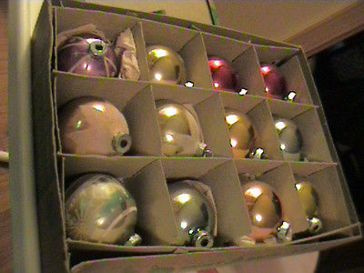 Title (ebay affiliate link): VTG Shiny Brite Ornaments-12-Original Box-blue-red-gold-silver-4 decorated