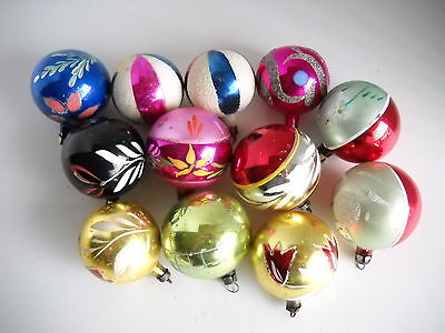 12 vintage small Christmas tree ornament glass, 2 with glitters