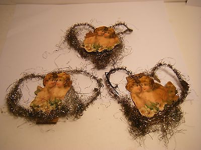 ANT. LOT 3 VICTORIAN DIE-CUT BOY & GIRL ANGELS SCRAPS TINSEL CHRISTMAS ORNAMENTS