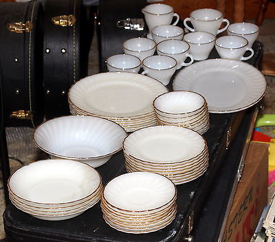 47 Anchor Hocking Fire King Swirl Milk Glass W/Gold Trim Suburbia Dinner Items