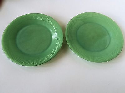 Set of 2 Vintage Fire King Milk Glass Green Jade Jadeite 9" Dinner Plates