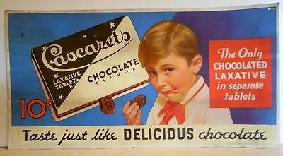 Title (ebay affiliate link): 1936? CASCARETS CHILDRENS CHOCOLATE LAXATIVE SIGN TROLLY CAR SIGN