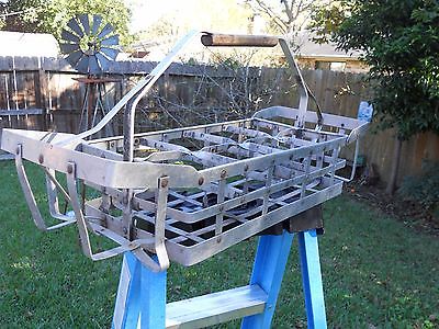 Old Vtg 12 Quart Metal Milk Bottle Dairy OIL Carrier Aluminum- Wood Handle.as is
