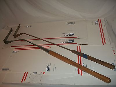 TWO Antique Primitive Scythe Sickle Blade Hand Hay Weed Cutter Rustic Farm Barn