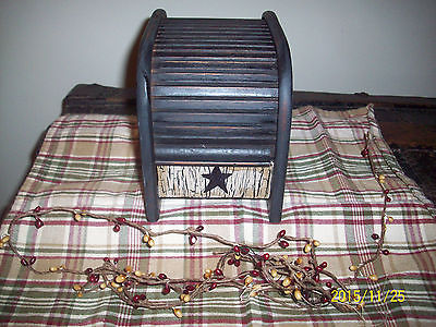 PRIMITIVE CRACKLE BLACK STAR WOOD ROLL TOP STORAGE BOX COUNTRY FARMHOUSE DECOR