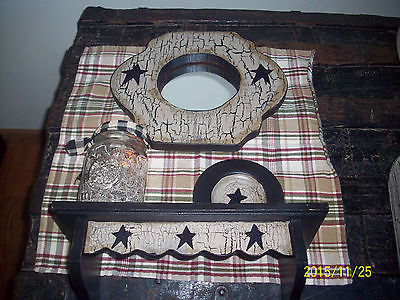 PRIMITIVE CRACKLE BLACK STAR WALL GATHERING MIRROR/SHELF COUNTRY FARMHOUSE DECOR