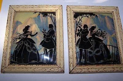TWO VINTAGE SILHOUETTE PICTURES WITH MOUNTAIN BACKGROUND