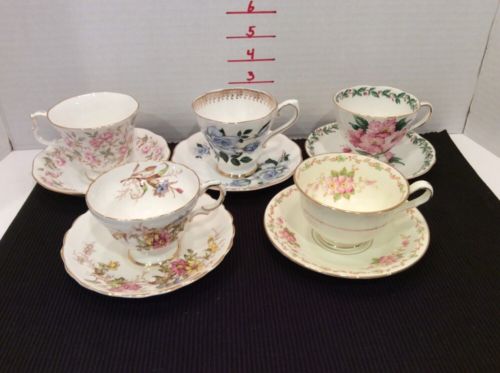 Title (ebay affiliate link): Vintage Lot of 5 Teacups & Saucers, Royal Albert Rosina Grafton Gladstone suther