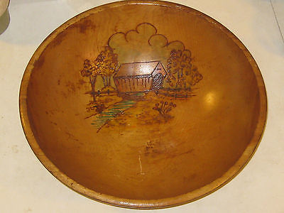 Rare Antique Primitive Wood Dough Bowl 15 1/8" Turned Bowl