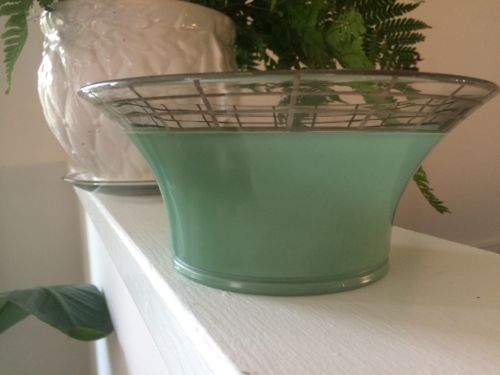 SALE! Art Deco Green Glass Bowl with Silver Overlay