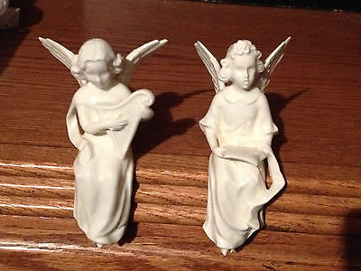 2 White Porcelain 1956 W. Goebel Angel Sitting Musical Figurines, 5 Inch Height