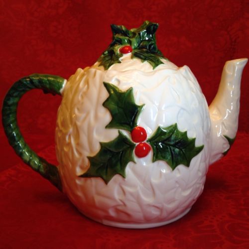 Title (ebay affiliate link): Vintage Lefton Japan Christmas Decorative White Tea Pot Holly Leaves Red Berries