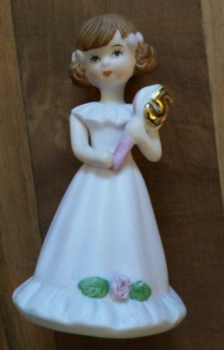 Title (ebay affiliate link): Growing Up Girls ceramic birthday figurine circa 1982. Age 5 with brown hair.
