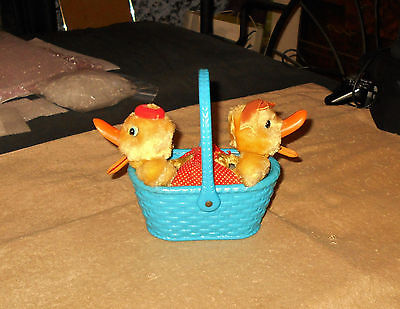 Vintage 1950's Wind-Up Ducks in Basket **WORKS** Japan Easter
