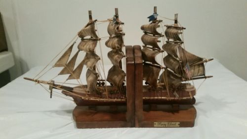 Rare, Vintage, Wooden Bookends - Marked Flying Cloud 1851 Made In Japan