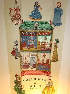 VINTAGE DOLL HOUSE DOLLHOUSE & DOLLS TEA TOWEL ANTIQUE WOODEN DOLL 1700 - 1800