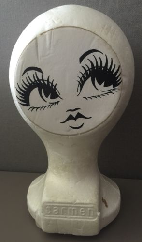 Title (ebay affiliate link): Super Cool Vintage Styrofoam Wig Stand Millinery Head By Carmen 1960s From UK