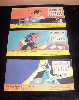 3 VINTAGE 1940's OMAHA PRINTING COMPANY INK BLOTTERS OMAHA NEBRASKA
