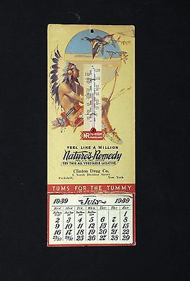 AWESOME 1939 TUMS ADVERTISING CALENDAR & THERMOMETER WITH INDIAN GRAPHICS